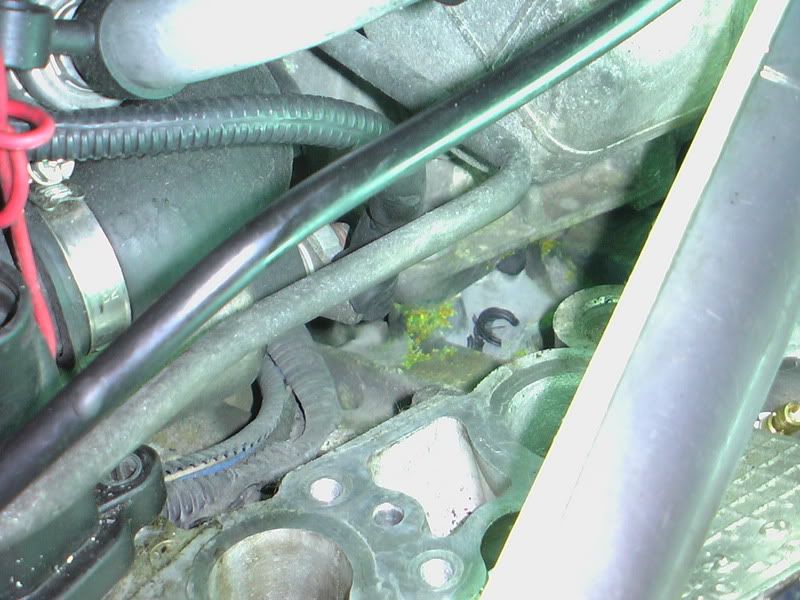 來∼看到上面相片引擎室裡我劃箭頭的地方!這東西叫溫度感知器。是用來感應引擎溫度,你儀表板的水溫幾格就是這裡感應的。